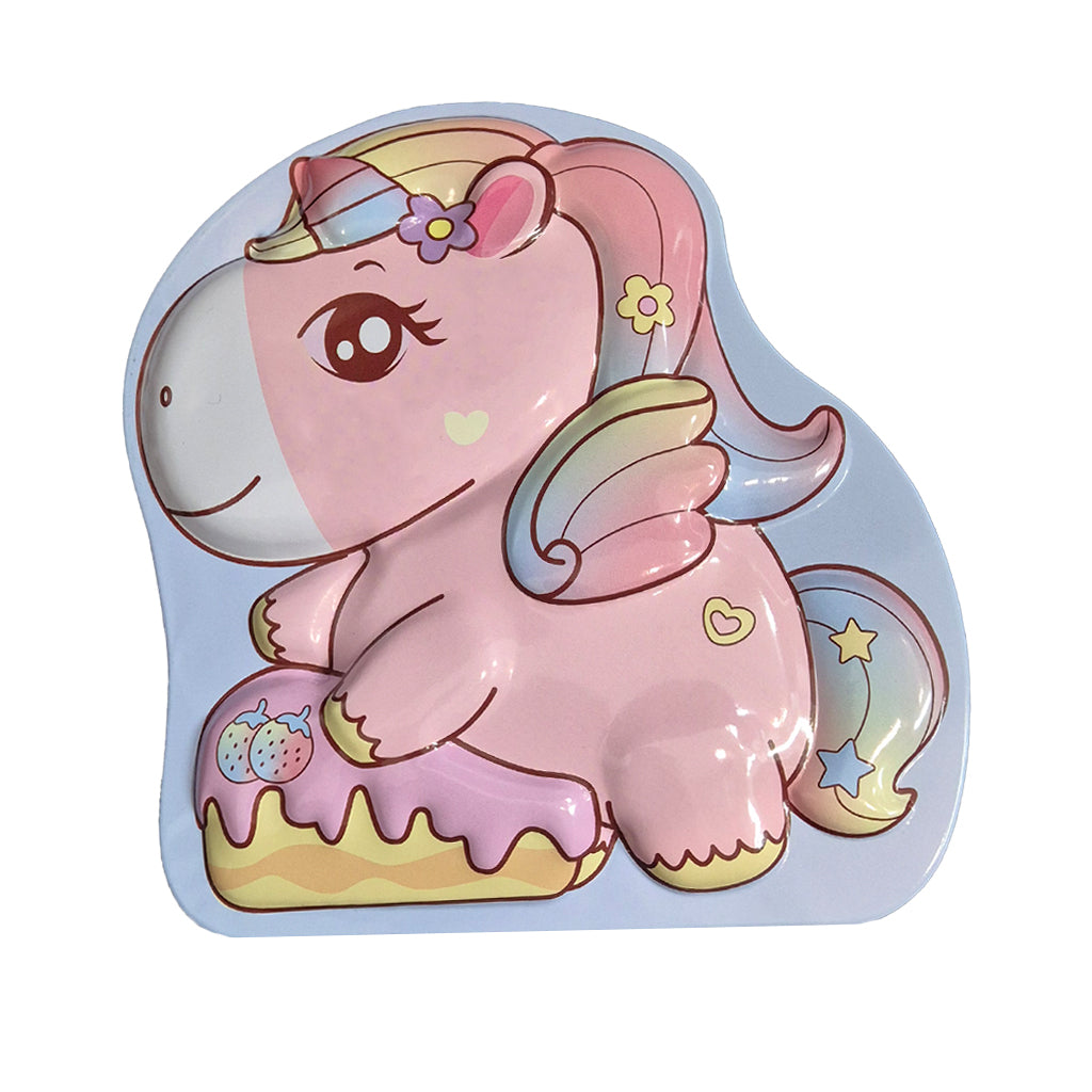 - The coin bank features a vibrant, embossed cartoon unicorn, adding a playful touch that children will love. The unique 3D shape and colourful design make it visually appealing and fun to use.