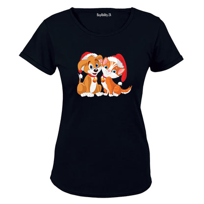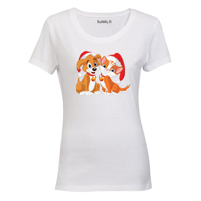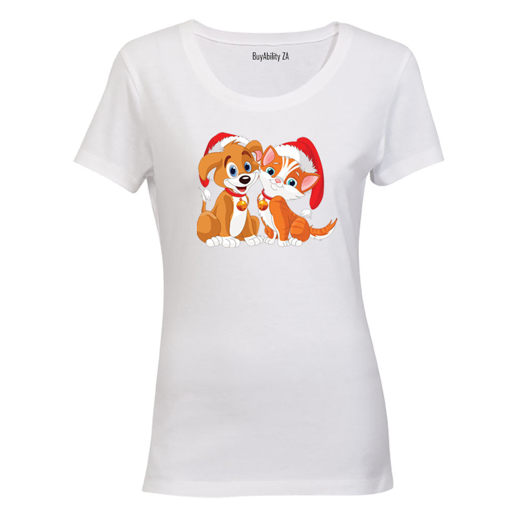 Christmas Kitten & Puppy - Ladies - T-Shirt