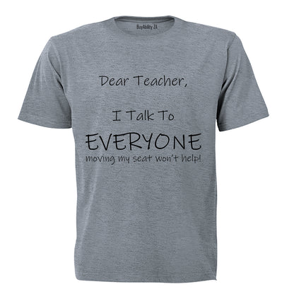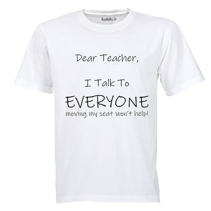 Dear Teacher, I talk to everyone! - Kids T-Shirt