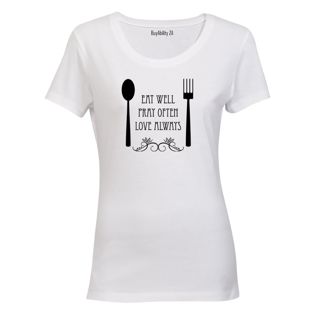 Eat Well, Pray Often, Love Always - Ladies - T-Shirt
