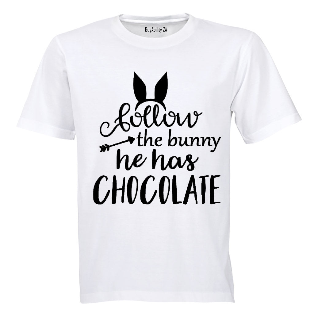 Follow The Bunny - He Has Chocolate! - Kids T-Shirt